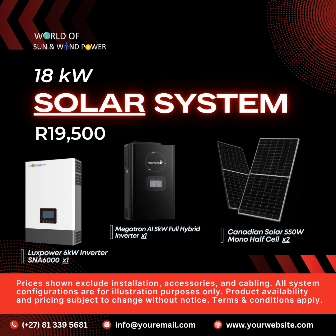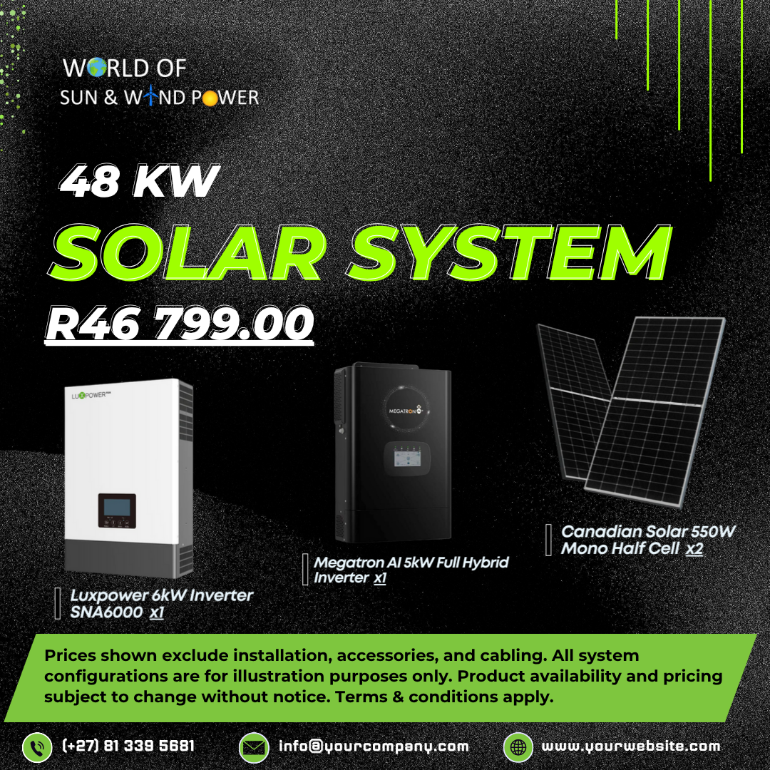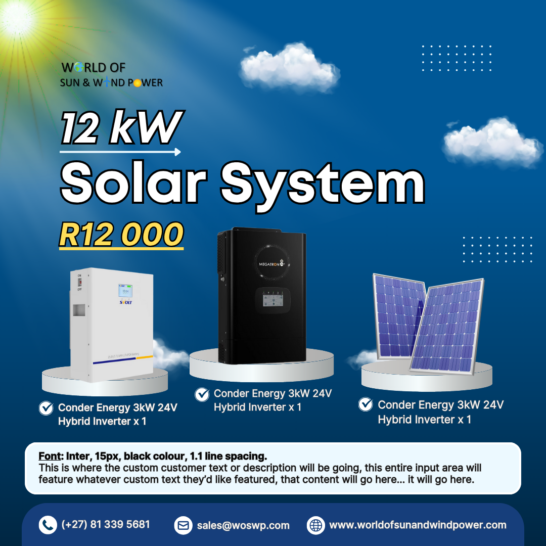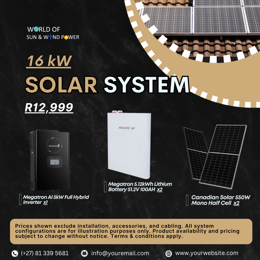 Choose your solar panels, inverters, and batteries — our templates automatically generate stunning combo designs with your logo, contact details, and text.
